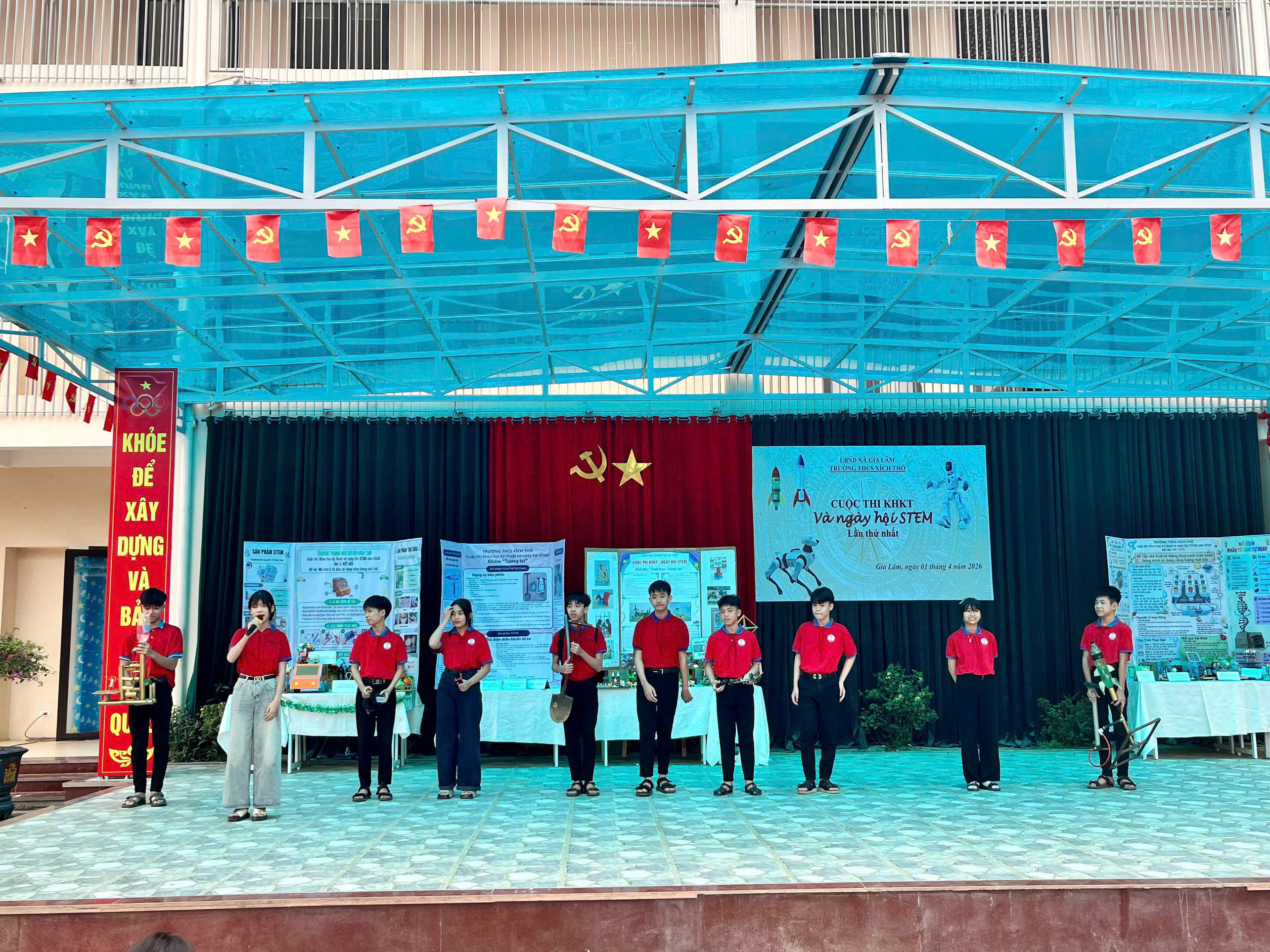 Trong không khí sôi nổi và tràn đầy hứng khởi, ngày 01 tháng 4 năm 2026, Trường THCS Xích Thổ đã long trọng tổ chức “Ngày hội Sáng tạo thanh thiếu niên nhi đồng và STEM” – một hoạt động ý nghĩa nhằm khơi dậy niềm đam mê khoa học và sáng tạo trong học sinh.